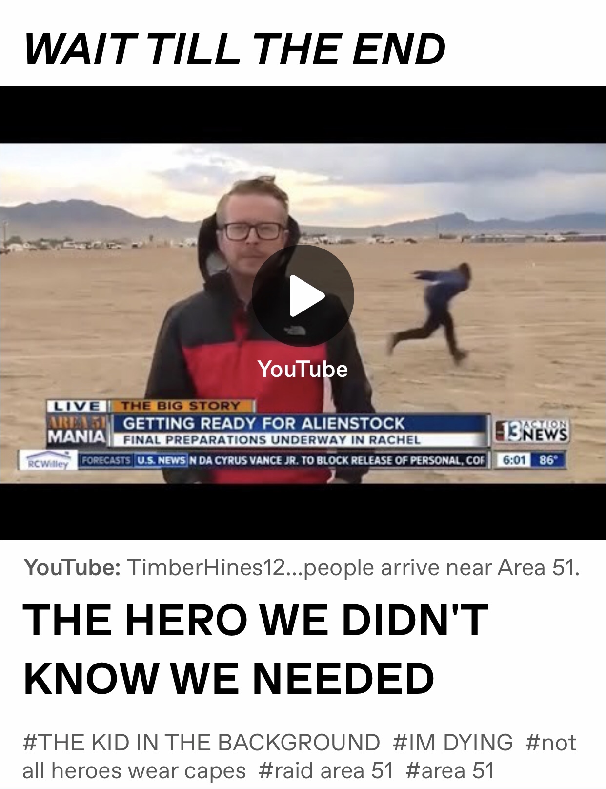 Craig Tucker – The Real Hero of the Area 51 Raid. The First Naruto Runner; Leading the way so others could follow. #NotAllHerosWearCapes