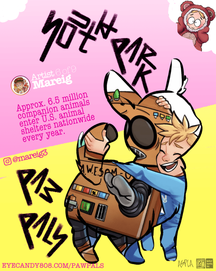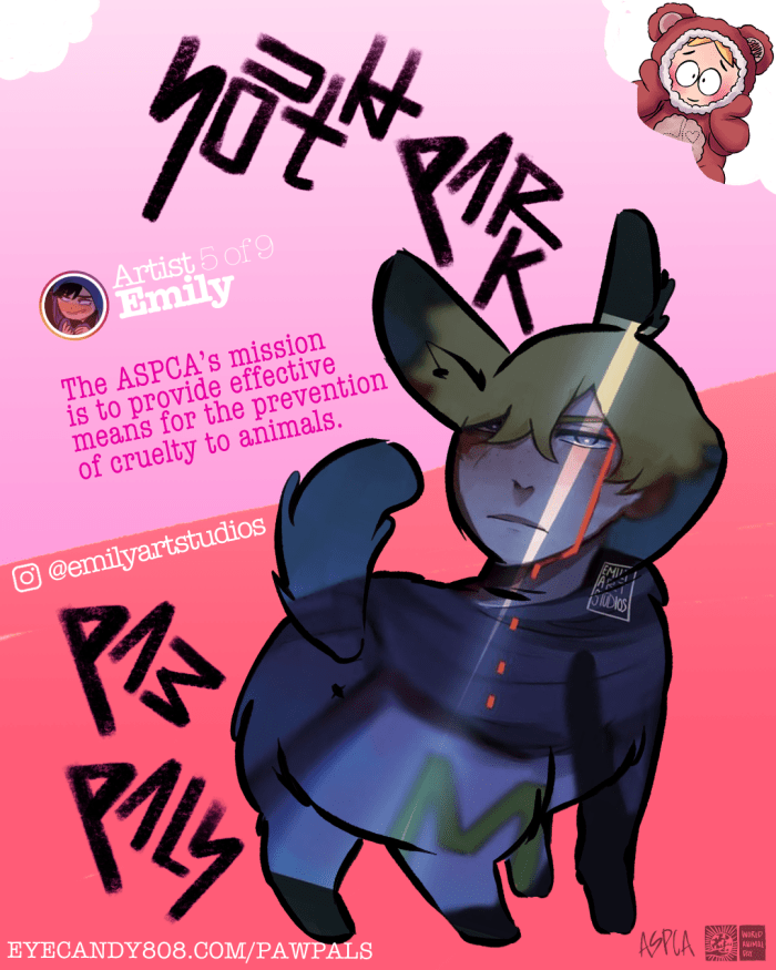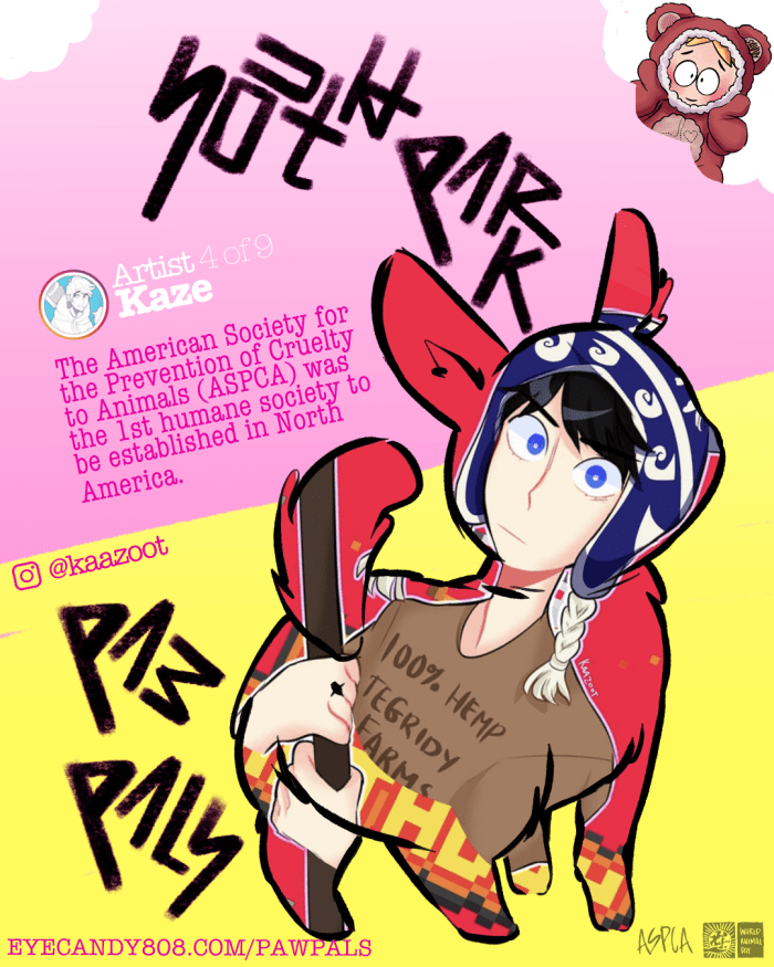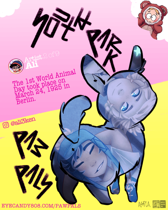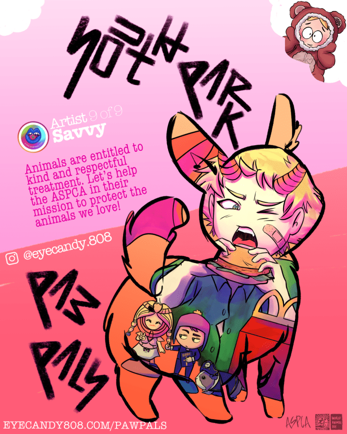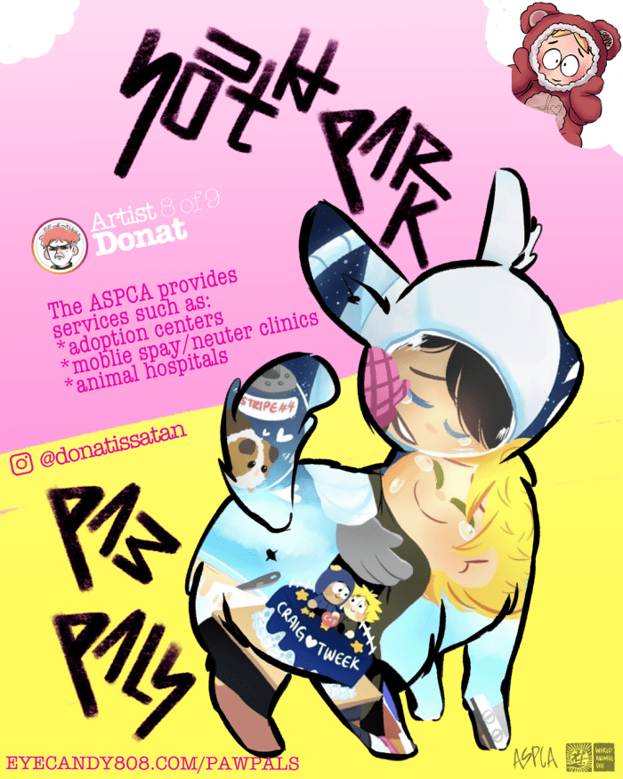 The Paw Pals Project was a labor of love involving a handful of super talented artists here in the South Park fandom. We banded together to support our furry animal friends in celebration of World Animal Day in October. Our goal was set to help the ASPCA in their mission to protect animals.